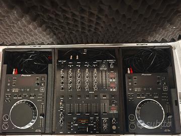 Console DJ completa con impianto audio. Tutto nuovo senza segni di usura. Usata solo un paio di volte in casa. composizione - 2 CDJ PIONEER 350 - MIXER BEHRINGER DJX 900 - 2 casse BEHRINGER B112 - 2 supporti laptop per PC - tutti i cavi necessari Tenuta sempre accuratamente nel suo flightcase Cedo per inutilizzo. Preferibile scambio a mano Per info scrivetemi in privato. prezzo trattabile