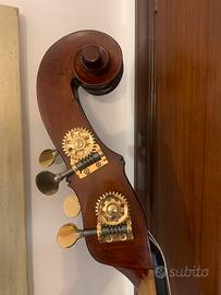 Contrabbasso di liuteria est europa, piano armonico in abete, fondo e fasce in bellissimo acero fiammato, tastiera in ebano, 3/4 diapason 104. D neck. Grande suono sia con arco che pizzicato. Strumento già perfettamente settato, non richiede alcun intervento, pronto per essere suonato.