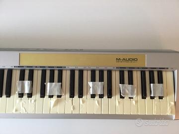 Controller midi m-audio con tasti semipesati. Funziona circa metà tastiera (nelle foto i tasti con il nastro non funzionano!). Vista la dimensione la spedizione è un po difficoltosa.