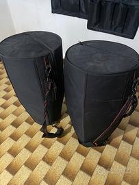 Come si vede in foto le conga sono vissute a livello estetico ma suonano al pari di molti modelli professionali. Sono corredate da custodie morbide di qualità.