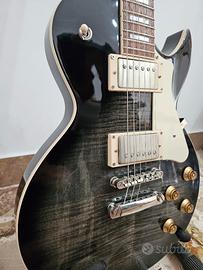 Ultimo ribasso. Cort CR250 TBK (trans black), ottima copia Les Paul, corpo e manico set-in in mogano come la vera Gibson, tastiera in Jatoba, top in acero fiammato. Suona benissimo, praticamente nuova senza cartellino, acquistata a novembre 2023, settata con corde d'addario exl 10-46, poco usate. Nuova da negozio costa circa € 450. Vendo per inutilizzo e doppio regalo, prezzo non trattabile. Tracolla e stand reggi chitarra non inclusi.