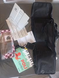 Sono compresi : caricabatteria, pedale , manuale d'uso ed etichette trasparenti per tasti.