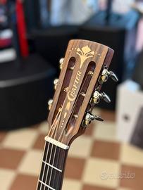 La costruzione prevede un top in Abete Engelmann massello, materiale noto per la risposta elastica e la chiarezza armonica, abbinato a fondo e fasce in Ebano Macassar. Il manico in Mogano monta una tastiera in Ebotech, un materiale composito progettato per offrire costanza timbrica e resistenza alle variazioni di umidita. Il sistema di accordatura e affidato a meccaniche Grover cromate in stile vintage, che garantiscono precisione nel mantenimento della tensione delle corde.
