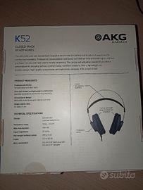 vendo cuffie chiuse da studio per registrazione modello AKG K52. Acquistate a settembre 2024, usate poche volte e perfettamente tenute, come nuove. I cuscinetti dei padiglioni non sono usurati e la pelle che li riveste è integra. Comode e leggere da indossare, non pesano sulla testa e non stringono. Le specifiche tecniche e fisiche sono presenti nella foto allegata. Vendo per inutilizzo