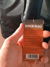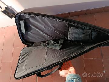 Custodia per chitarra nuova con cartellino, imbottita e con supporto sottostante in metallo per proteggere il fondo della chitarra da cadute accidentali (come visibile da ultima foto).