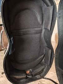custodia in carbonio per violoncello stilizzata come in foto di Bogaro & Clemente - peso 3 kg munita di cinghie rinforzate - alloggiamento per 2 archi con chiusura magnetica - 2 tasche interne e cuscinetti a protezione dello strumento