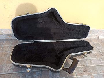 Custodia guscio rigido ABS (tipo BAM/GATOR) sagomata per sax alto, color antracite, garantisce ottima protezione dello strumento con peso ridotto ed estrema comodità. Bordi di alluminio, interno in espanso rivestito in peluche nero. Anelli a “D” per aggancio tracolla ( che posso fornire, ma non originale, come pure imbottitura maniglia). Peso solo 1,7 Kg.