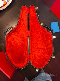 Famosa e blasonata custodia per sassofono tenore con involucro in vetroresina ed interno in velluto. Buone condizioni. Adatta a Selmer Mark VI, VII e Super Action e a tutti gli Yamaha