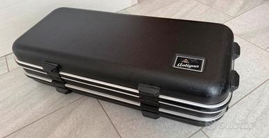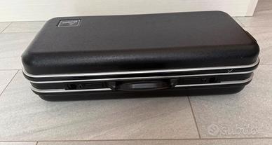 Custodia rigida è molto robusta in policarbonato con imbottitura conformata e rivestita in velluto. Presenta alloggio sax contralto, chiver, bocchino, ed ampio vano per accessori come ance, tracolle, eccetera. Completa di Chiavi per la chiusura delle serrature. Due comode maniglie, una posta sulla lato orizzontale e una su quello verticale di doppia possibilità di trasporto.