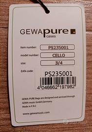 Causa inutilizzo, vendo custodia nuova (mai usata) per violoncello 3/4 Gewa CS 01. Consegna a mano in zona Vigonza o Padova.