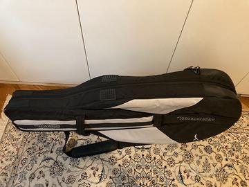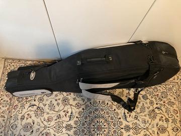 Custodia per violoncello Gewa Jaeger semirigida molto ben imbottita, trasportabile con spallacci, a zaino, con tracolla o con maniglia laterale. Apertura a cerniera.