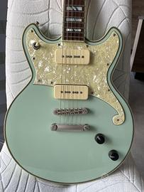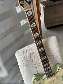 Corpo in Ontano, manico in 3 pezzi con tastiera in Palissandro, segnalasti in madreperla, switch a 3 posizioni, meccaniche Grover Super Rotomatic satinate, hardware satinato, ponte Tune-o matic satinato, custodia rigida compresa.