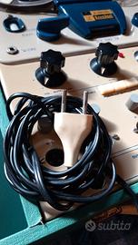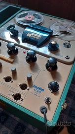 Raro echo a nastro Davoli Krundaal DTR2390SM, presumibilmente 60s. Si tratta di un mixer/registratore/echo a nastro valvolare a 5 canali con cassa integrata, a quanto ne so tutto originale, schema elettrico all'interno. Da collezione/revisionare, mostra qualche segno del tempo ma è completo. Visto il lungo sonno, meglio farlo accendere da un tecnico.