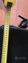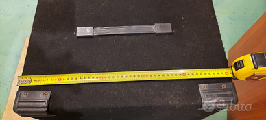 In legno rivestito con moquette nera , maniglia per trasporto.