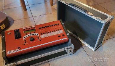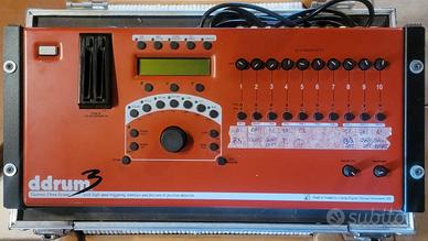 Solo per chi sa di cosa stiamo parlando! A malincuore e dopo più di due anni di inutilizzo, vendo la mitica introvabile DDRUM3, penultima serie ancora Clavia, dotata dei celebri campionamenti multilayer dalla dinamica perfetta. La DDRUM3 è celebre per la sua regolazione analogica della dinamica, tramite i knob è possibile eliminare i retrigger e settare la propria dinamica con una semplicità disarmante e senza mai entrare in complesse schermate digitali con tutti i parametri e le curve, basta settare se state utilizzando una batteria acustica con trigger o altro set e si adatterà in automatico, vi assicuro che sui palchi fa la differenza e non esiste più nulla di simile in commercio. Un'altra caratteristica top è l'uscita output separata di ciascun elemento del set, in tour sommavo i trigger ai microfoni e il fonico poteva equalizzare separatamente, questa caratteristica oggi è presente solo sui moduli di fascia altissima e relativo costo. Lo strumento è stato sempre tenuto nel fly case che si vede in foto, costruito su misura con il cassetto per i trigger, in modo da avere tutto a portata di mano in un unico case; regalo il case dal valore commerciale di 160 e i trigger originali che mi sono rimasti e che si vedono in foto. Lo strumento è perfettamente funzionante, includo nel prezzo anche il processore di riserva (introvabile) che avevo acquistato per fare l'ultimo upgrade e il back-up dei campioni (introvabile).