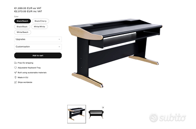 Vendo splendido Buso Audio Composer Classic 88, desk professionale progettato specificamente per studi di produzione musicale e home studio di alto livello. Caratteristiche principali: Struttura solida e di alta qualità artigianale italiana Progettato per tastiera 88 tasti (perfetto per workstation e MIDI controller) Ampio piano di lavoro per monitor, laptop e outboard Design ergonomico per lunghe sessioni di produzione Estetica elegante e professionale Ideale per: Producer Studi di registrazione Home studio evoluti 📦 Condizioni: pari al nuovo, sempre tenuto con cura in ambiente non fumatori 📍 Possibilità di visione e ritiro in zona 💰 Prezzo: 1400 euro Vendo per cambio setup. Contattami per maggiori informazioni o foto!