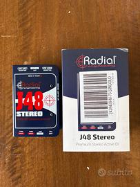 Vendo DI Box J48 Stereo, marca Radial Engineering, con le seguenti caratteristiche: - DI Box attiva a due canali - Jack in/thru - Uscita: XLR - Low cut commutabile, pad da -15 dB e inversione di fase - Ground lift - Richiede l'alimentazione phantom a 48 V - non presenta particolari segni di usura - spedisco in tutta Italia e garantisco un imballaggio di buona qualità