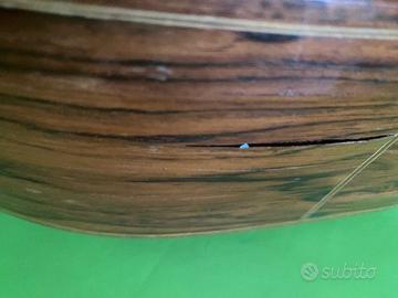 Difetti estetici: fasce laterali con impiallacciatura esterna scollata in alcuni punti e piccolo bollo , che non pregiudicano il suono.