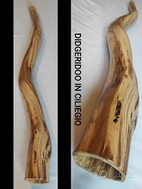 Didgeridoo interamente realizzati a mano, in pioppo nota Re# lunghezza 170cm , in ciliegio nota Re, lunghezza 157 con imboccature in legno di faggio da 3cm, strumenti risonanti ricchi di armonici e con un buon volume.