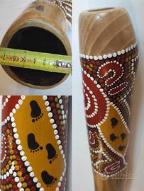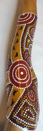 Didgeridoo in legno di Ailantus, nota Re #, lunghezza 140 cm, imboccatura in legno di faggio da 3cm, realizzato e decorato a mano (tecnica del taglio longitudinale) acrilici su legno stile dot painting.