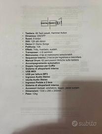 Pianoforte digital piano dp1 , in ottime condizioni si puo considerare nuovo. Utlizzato solo poche volte dopo l’acquisto. Prezzo trattabile.