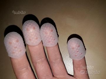 Vendo 4 pratici ditali in silicone per proteggere i polpastrelli quando si suona uno strumento a corde, come chitarra, basso o ukulele. MAI USATI. Colore trasparente. Morbidi e flessibili. I ditali sono stati inventati per i più svariati utilizzi, quindi non soltanto per proteggere le dita quando si suona uno strumento. Sono infatti un accessorio utile a proteggere le dita anche per altri tipi di uso. Misura: M. Li consegno ognuno dentro la sua bustina trasparente.
