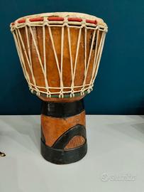 Djambè/bongo africano dipinto e fatto a mano. Misure 24cm x 38cm. Strumenti musicali a percussioni. Zona di ritiro Lago Patria. Per info 3392055337