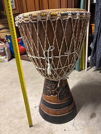 Vendo djambe per inutilizzo Taglia grande La pelle è marcata dal tempo,c’è un piccolissimo foro nella parte esterna ma la struttura è ancora ottima. Al massimo basta cambiare pelle e si ha uno djambe praticamente nuovo.