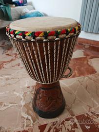 vendo Djembe africano fabbricato in maniera artigianale, in Senegal, con pelle di cammello ed incordato ed intarsiato a mano. nuovo, mai utilizzato