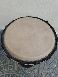 Djembé bongo Djambe yambe yembe. Qualche imperfezione sul tronco. Pelle in buone condizioni.