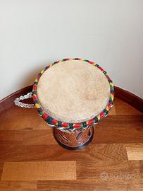 Vendo djembe artigianale realizzato con vera pelle di capra trattata, montata e tirata correttamente per garantire un suono profondo, caldo e ben definito tra bassi, toni e slap.