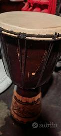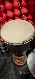 Vendo Djembè Africano artigianale interamente fatto a mano, in buone condizioni estetiche, con pelle da riparare/sostituire. Lo Djembè suona bene ma non ha molta potenza in quanto la pelle ha un piccolo foro che impedisce la fuoriuscita completa del suono che risulta attenuato. E' presente una pratica maniglia in tessuto per trasportarlo comodamente. Lo Djembè ha un altezza di 40 CM. Spedisco in tutta Italia #Djembè #Tamburo #Bonghetto #Bongo #PERCUSSIONI #AFRICA #ARTIGIANALE #40CM