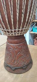 Djembe in legno, diametro 37cm, altezza 65cm usato pochissimo, il pellame è perfetto ed il suono va da registi alti fino a bassi molto forti.