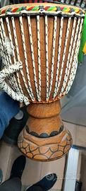come in foto djembe, fusto in legno Africano con pelle di capra non trattata e scanalature interne .