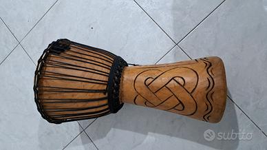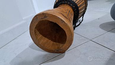 Djembé antico, buone condizioni con qualche segno di usura visibile in foto. Altezza 45 cm circa, larghezza 23 cm circa Spedizione rapida