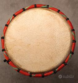 Vendo tamburo africano tipo Djembe, acquistato nel 2004 durante un viaggio in Senegal. Realizzato artigianalmente a partire da un piccolo tronco di legno, con pelle naturale (budello di animale) tesa a mano.