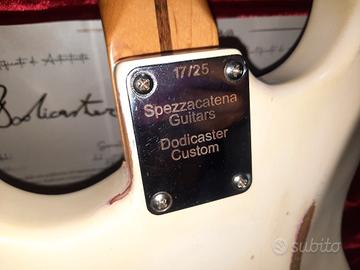 Vendo spettacolare e unica nel suo genere, Dodicaster costruita dal maestro liutaio Luigi Spezzacatena, su precise specifiche (legni, hardware, nickel, rame, elettronica ecc....) di Dodi Battaglia con body stratocaster: da qui il nome DODICASTER.