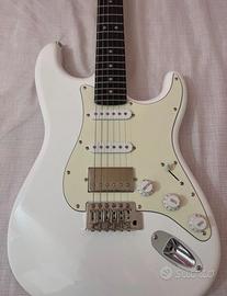 inclusa custodia (con due tasche), cavi, plettri, digital tuner, amplificatore, fascia per metterla in spalla, chiave per truss rod e leva per vibrato,