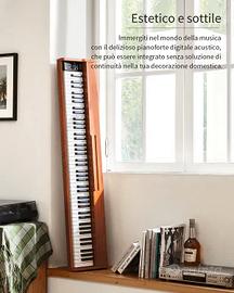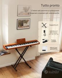 Caratteristiche ESTETICO E COMPATTO:Scopri la perfetta combinazione di bellezza e praticità con il nostro elegante pianoforte digitale, progettato per completare qualsiasi arredamento domestico e liberare la tua creatività musicale. SUONI DI PIANO REALISTICI:Goditi una vasta gamma di voci di pianoforte, da quelle a coda a quelle elettriche, meticolosamente realizzate per un viaggio musicale espressivo e coinvolgente. TASTIERA SENSIBILE ALLA VELOCITÀ A 88 TASTI:I tasti sensibili alla velocità a 5 livelli sono ideali per sviluppare il tocco e la tecnica, adatti a musicisti di tutti i livelli di abilità. KIT COMPLETO PER PRINCIPIANTI:Il kit include utili adesivi per pianoforte per un apprendimento senza sforzo, un pedale sustain per un controllo espressivo e un robusto supporto pieghevole a X che si adatta all'altezza di gioco perfetta, rendendolo facile da installare in qualsiasi spa REGISTRAZIONE E RIPRODUZIONE:Cattura le tue performance con la funzione di registrazione integrata e salva la tua musica su unità flash tramite USB per riprodurla su altri dispositivi. CONNESSIONE WIRELESS:Il DEP-1S supporta i musicisti moderni con funzionalità audio e MIDI Bluetooth. Collega il tuo smartphone per riprodurre musica in streaming attraverso gli altoparlanti del pianoforte e usa il MIDI Bluetooth per interagire con app musicali e software DAW per imparare e comporre. MULTIFUNZIONE:La modalità split ti consente di suonare insieme a un partner o un insegnante, mentre i doppi jack per cuffie consentono di esercitarsi in silenzio per due. Con 128 toni, 100 ritmi, 88 brani demo e accompagnamento di accordi, il DEP-1S migliora la tua esperienza musicale con divertimento e creatività senza fine.