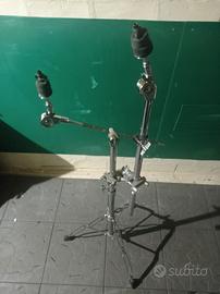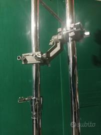 Doppia asta TAMA supportata da un unico treppiedi tramite meccanica di raccordo professionale. Un'asta è a giraffa l'altra è dritta, ideale anche per problemi di spazio in luoghi limitati.