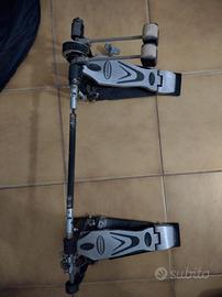 La molla del pedale singolo è fuori uso (vedi foto). Chi con un minimo di pratica può facilmente sistemarla, suppongo. Doppio pedale con leggero cigolio. Per ulteriori foto o dettagli, a disposizione.