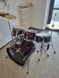 Vendo Batteria acustica in legno d'acero laccata rossa metallizzata in ottimo stato per bambini/ragazzi.