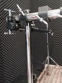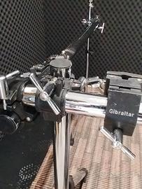 Drum rack Dixon Gibraltar in buone condizioni ma ottimo dal punto di vista funzionale. Usato solo per 3 eventi dal vivo e poi sempre in sala prove. Composto da una barra orizzontale sostenuta da 2 piedini originale ed una laterale a cui ho messo una asta piatti "heavy" .Provvisto di 6 stop per piatti/tom e 6 memorie