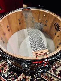 Vendo rullante Rebel custom shop finitura exotic la più prestigiosa, con venature a vista . Misure 14x6,5 . Il rullante monta ancora le pelli originali . Usato pochissimo.