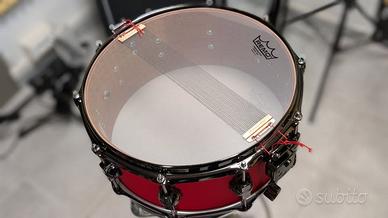 Rullante in perfette condizioni, senza graffi o segni. 60% betulla, 40% mogano. Fusto a 5 strati con bearing edge a 60° lato battente e a 45° lato risonante. Sustain controllato grazie alla betulla, suono caldo del mogano. Prezzo non trattabile.