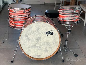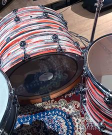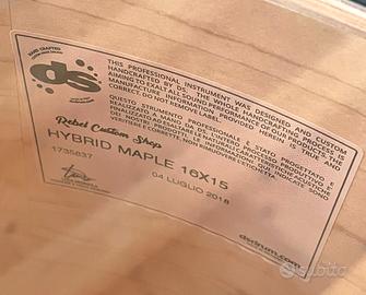 Vendo set completo Drum sound Rebel: - Cassa 24x15 - Timpano 16x15 - Tom 13x9 - Hybrid Maple - Cerchio reggitom per asta - Finitura Urban Orange-black over white solid satin - Pelli Remo Emperor Clear battenti e sabbiate risonanti, condizioni buone. SOLO FUSTI. In condizioni perfette, usata una volta in studio e in una decina di live. Condizioni pari al nuovo – no permute – prezzo leggermente trattabile. La Serie DS Rebel è un punto di riferimento dell'incessante ricerca evolutiva dell'azienda di Torino. L'obiettivo è quello di offrire il suono che il batterista ha in mente. L'esclusivo nuovo fusto mira ad intrecciare il calore vintage e il sustain che può adattarsi a qualsiasi stile di musica. La versatilità è il punto di forza predominante. La produzione avviene nel Custom Shop a Torino. Il fusto Ds Rebel Maple Hybrid è formato da legno ibrido senza cerchi di rinforzo. Ogni fusto è sottodimensionato di 2,7mm permettendo alla pelle di rimanere piatta all'esterno del bordo d'appoggio per migliorare il tono e il sustain. Questo fusto offre un gran punch sulla fascia bassa, calore, potenza, proiezione e un attacco morbido.