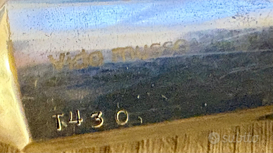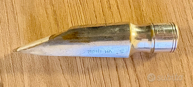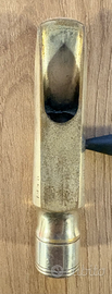 Vendo a malincuore questo fantastico e rarissimo Dukoff Hollywood VM Special (Video Musso) per sax tenore – anno ’48 – 5* (apertura reale ~6*) Bocchino marchiato 5* ma misurato circa un 6*, quindi con apertura medio-aperta, ideale per chi cerca un perfetto equilibrio tra controllo e proiezione. Il becco è originale in ogni sua parte: è stato solo sostituito il bite plate, ora nuovo e molto robusto (tipo Otto Link). Per il resto è completamente intonso. Grande proiezione, Facilità di emissione e risposta immediata Pezzo davvero difficile da trovare in queste condizioni. Preferisco ritiro a mano, ma posso spedire. No perditempo.