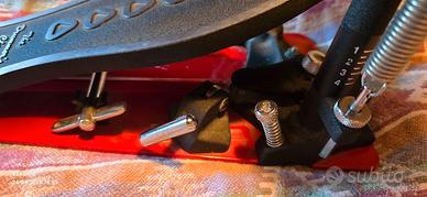 DW 5000 AD4 Professionale – Doppia Catena Il pedale che ha fatto la storia della batteria, scelto dai migliori professionisti al mondo per la sua solidità, velocità e precisione. Il DW 5000 è lo strumento definitivo per chi cerca prestazioni di alto livello nei live, testato sui palchi più prestigiosi: È stato il motore del groove di Dave Grohl nei tour mondiali dei Nirvana. È il pedale scelto da Nicko McBrain per i colpi fulminei nei concerti degli Iron Maiden. Utilizzato da leggende come Taylor Hawkins (Foo Fighters), Travis Barker (Blink-182) e Larry Mullen Jr. (U2) durante il monumentale Joshua Tree Tour. Usato pochissimo, questo esemplare è la versione AD4 (Accelerator Delta 4), l'ultima e più evoluta generazione della serie 5000. Offre la massima fluidità grazie al sistema a doppia catena, garantendo colpi potenti e un controllo totale sulla dinamica. Cosa significa AD4 (Specifiche Tecniche): Camma Accelerator (A): sistema decentrato che accelera la velocità del battente negli ultimi centimetri di corsa, garantendo una risposta fulminea. Cerniera Delta (D): dotata di cuscinetti a sfera per eliminare ogni attrito e gioco laterale. Serie 4 (4): l'aggiornamento più recente che include il sistema Tri-Pivot Toe Clamp (3 cuscinetti rotanti che si adattano a ogni cerchio senza rovinarlo) e la base in gomma antiscivolo integrale. Un pedale professionale che nuovo costa circa 300 euro. Meccanica perfetta, battente originale incluso. Ricambi originali e manuale, inclusi. Note: Restituzione non accettata. Disponibile per prova in zona Roma Nord. No scambi, No permute, No sconti, No perditempo.