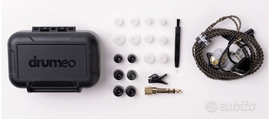 QUESTO PAIO DI EAR DRUM (IL CUI PREZZO SAREBBE DI €133 + SPESE DOGANALI 35) ERA IN OMAGGIO CON IL RINNOVO DELL'ISCRIZIONE ANNUALE AL SITO MUSORA; A ME NON SERVONO QUINDI LE VENDO Tipo di driver: 2 driver dinamici + 1 driver ad armatura bilanciata Gamma di frequenza: 18 Hz - 22 kHz Isolamento acustico: -29 dB Impedenza (a 1 kHz): 18 Ω Sensibilità (a 1 kHz): 97 dB