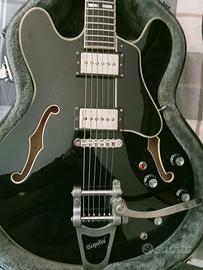 Vendo anche questa Eastman T486-B la versione viene con Seymour Duncan Phacat Pick up (P90 nel formato humbucker) e un Bigsby. Ho deciso venderne una di queste chitarra (ne ho due vedi l'altro annuncio) quella che non vende la tengo. Il top di questa chitarra è stato trattato da un liutaio per renderla quasi nuova ed è stata completamente aggiustato da un liutaio ed i tasti sono a +- 90%. é stato messo Kluckson Locking tuners ed un suo ponte nuovo. La chitarra è in ottima condizione. Questa chitarra ha un suono meravigliosamente potente e aperto grazie al pickup Phatcat ed è adatta a qualsiasi genere musicale. Come potete vedere, la chitarra è in ottime condizioni e viene fornita con la sua custodia originale e la documentazione. Di seguito trovate i dettagli di questa chitarra, come riportato sul sito web di Eastman. Questa chitarra può facilmente competere con le Gibson E335, che costano più del doppio. La chitarra è disponibile per essere provata a casa mia a Genova. Non sono interessato in permute o scambi. No perditempo per favore - se non hai l'intenzione di comprare questa chitarra non mi contattate per favore.